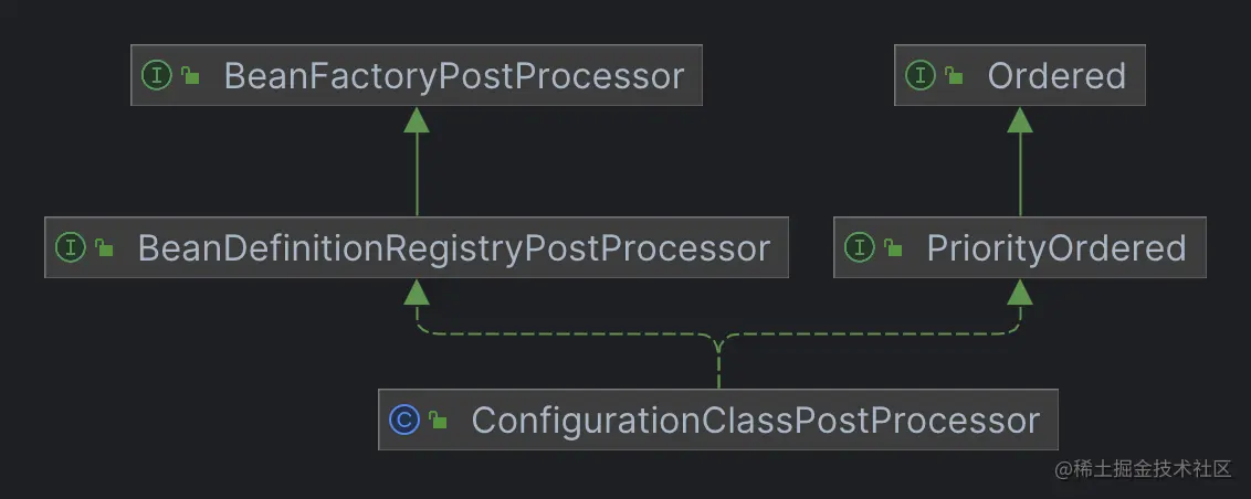 我们看一下 ConfigurationClassPostProcessor 的继承关系。