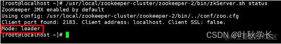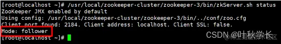 我们会发现,2号服务器启动后依然是跟随者(从服务器),3号服务器依然是领导者(主服务器),没有撼动3号服务器的领导地位。