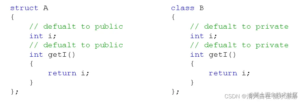 - 在用 struct 定义类时,所有成员的默认访问级别为 public