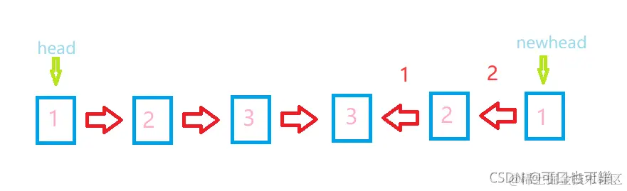 - 从中间结点开始对接下来每个结点进行改变结点方向