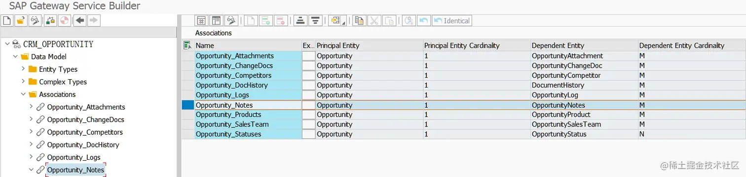 双击 SEGW 里的 Navigation Properties 文件夹,打开 mass edit view,能看到每个 navigation property 对应下列五列需要维护: