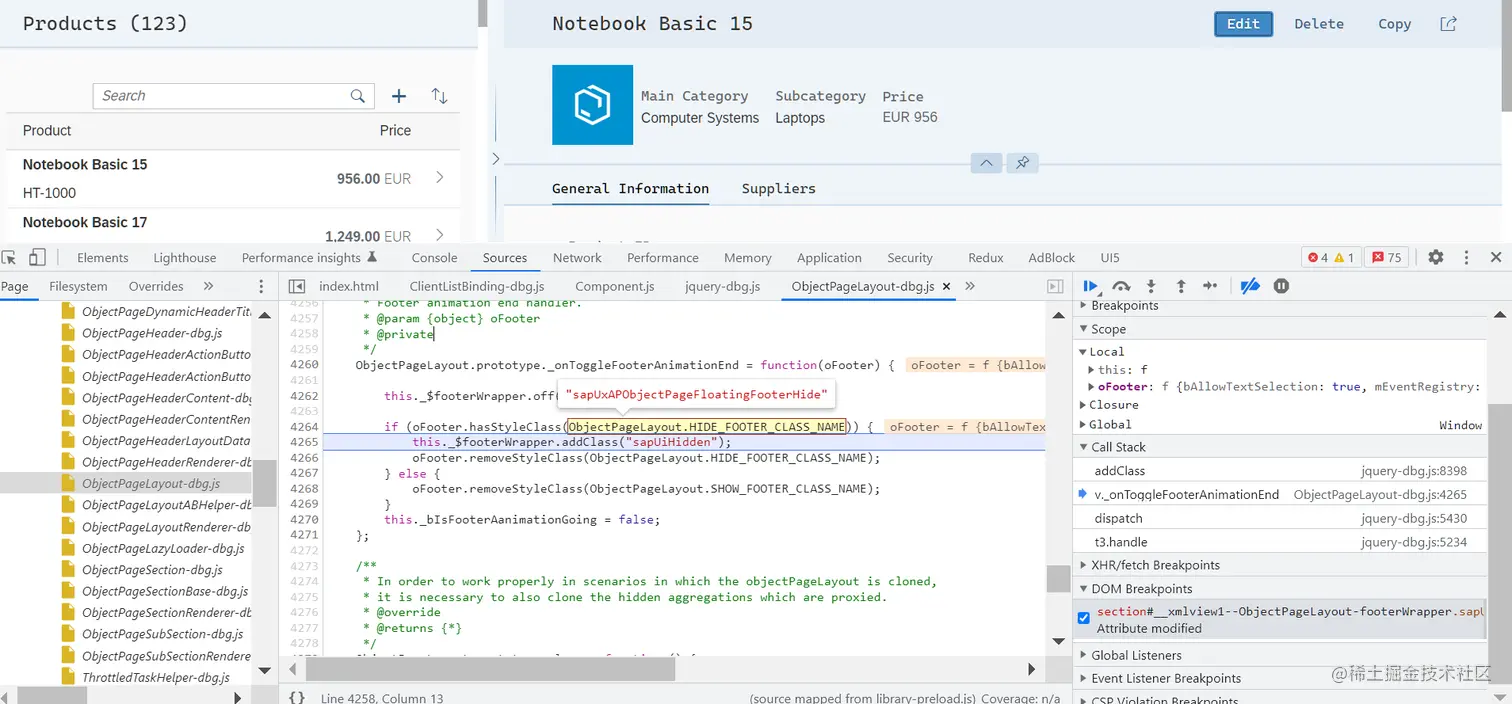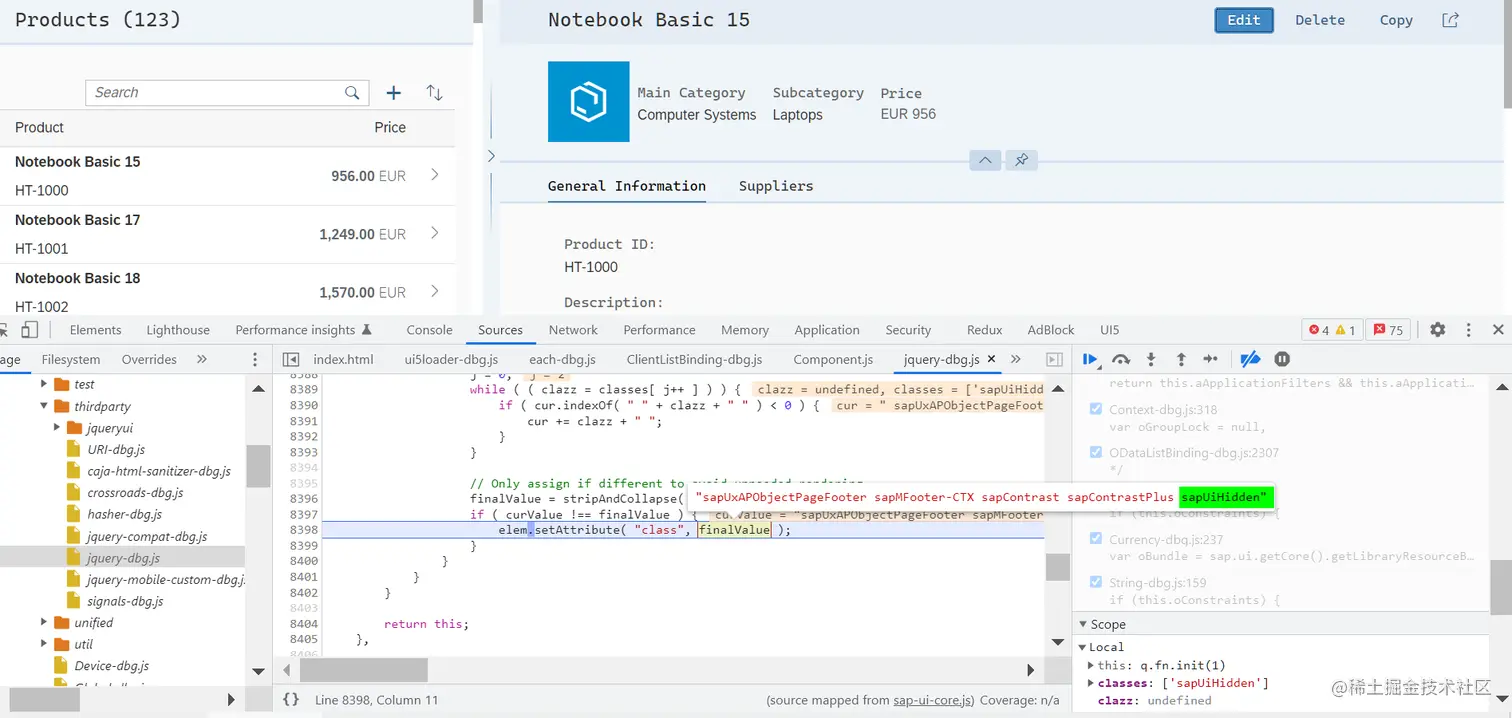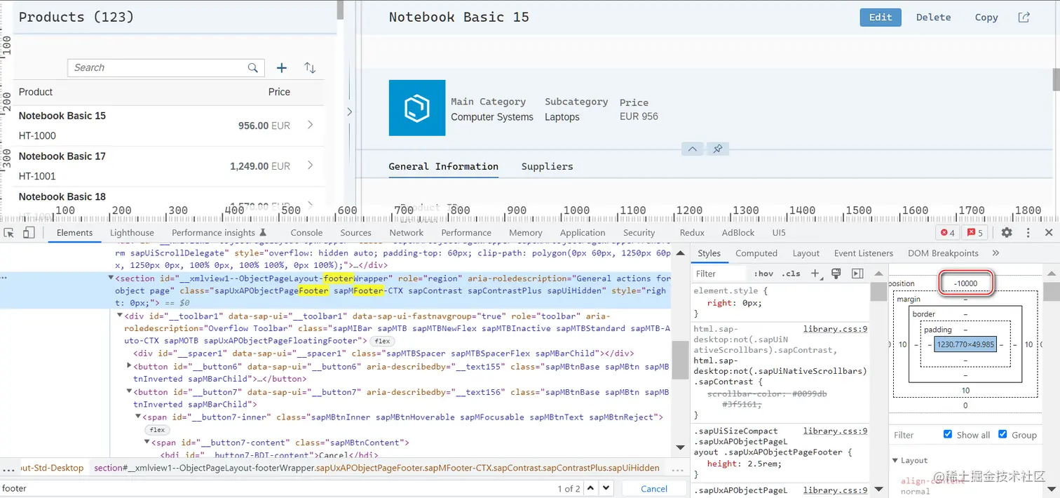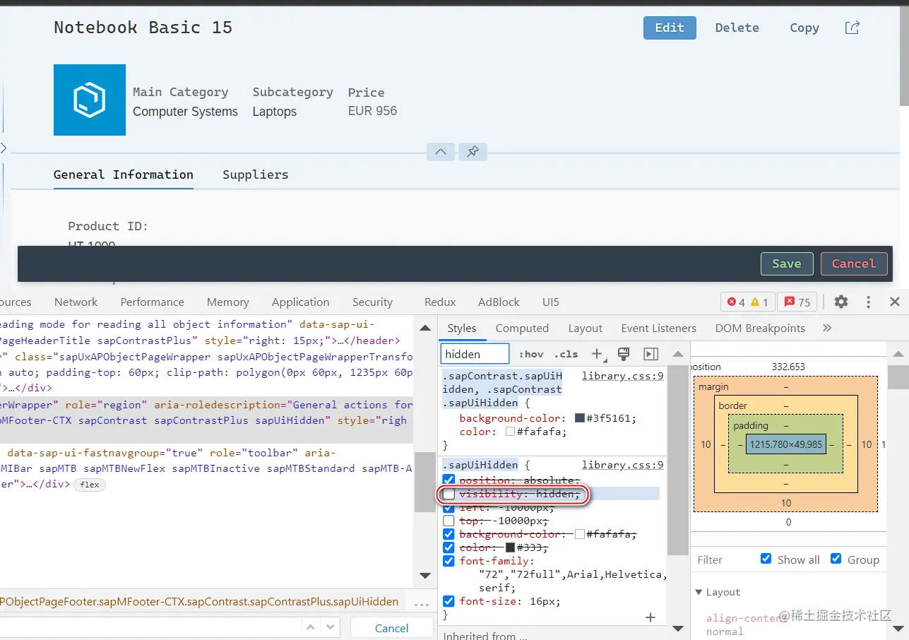 点击 Edit 按钮之后,给 section 插入了 sapUiHidden 的 class: