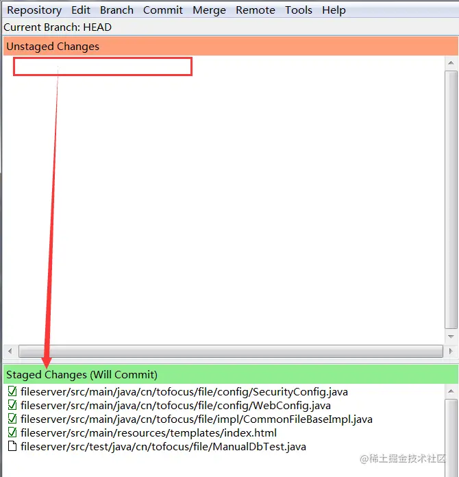 - 在 git gui 里面把冲突的类点一下