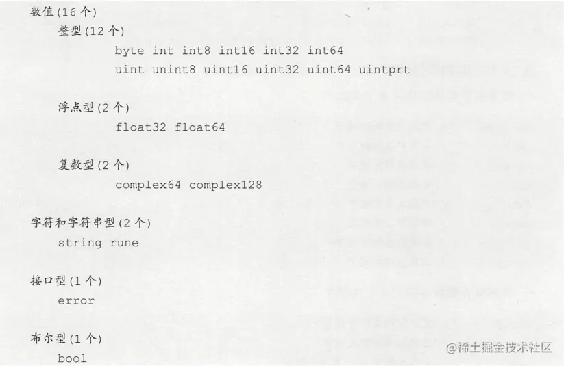 Go内置数据类型标识符