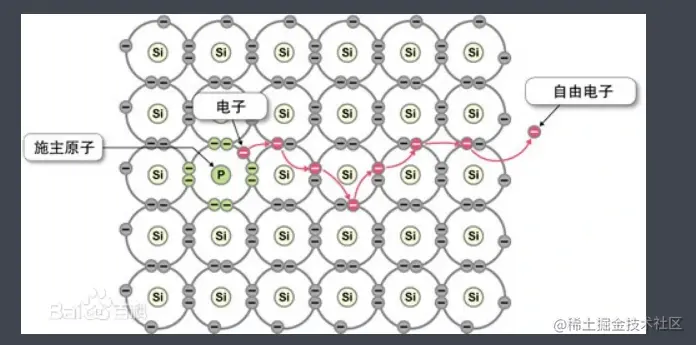 磷的这个位置会被①个五价元素给取代,最外层中应该会具有⑤个价电子,而我们这里只有④个电子就能够形成共价键,那么还有①个价电子它就非常容易逃脱于共价键束缚!