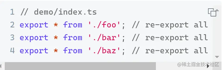index.ts (Barrel file)是一种将多个模块的导出汇总到单个方便模块的方法。index.ts 本身是一个模块文件,它重新导出其他模块的选定导出。