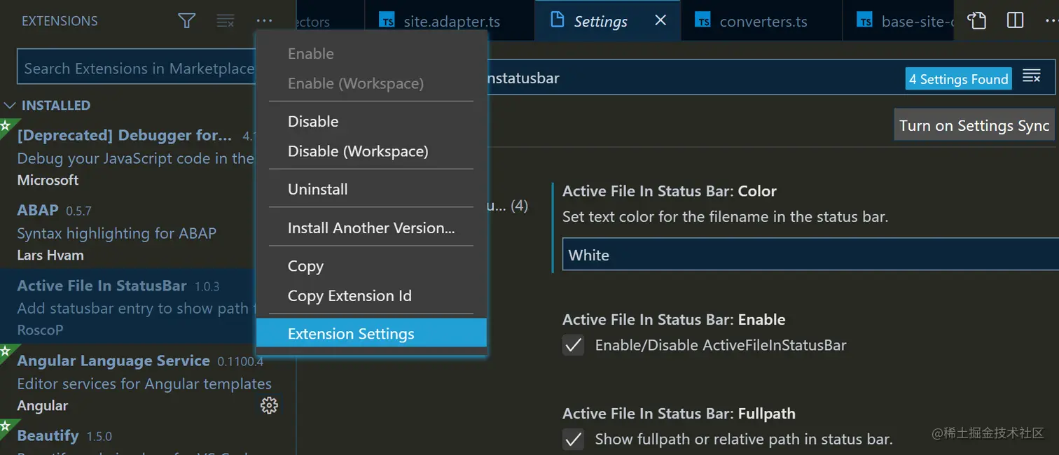 选择 Extension Settings:可以修改 Status Bar 显示的文本颜色: