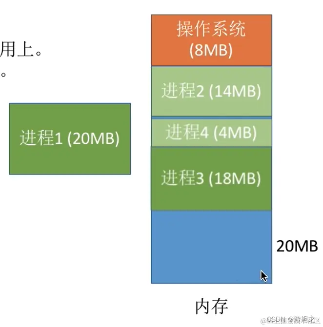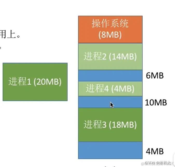 内部碎片:分配给某进程的内存区域中,有部分没被用上。