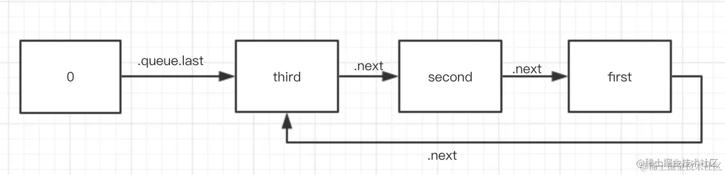 // 第一次更新时,队列是一个自圆queue.last.next = queue.first。当第一次update提交后,baseUpdate不再为空即可跳出队列