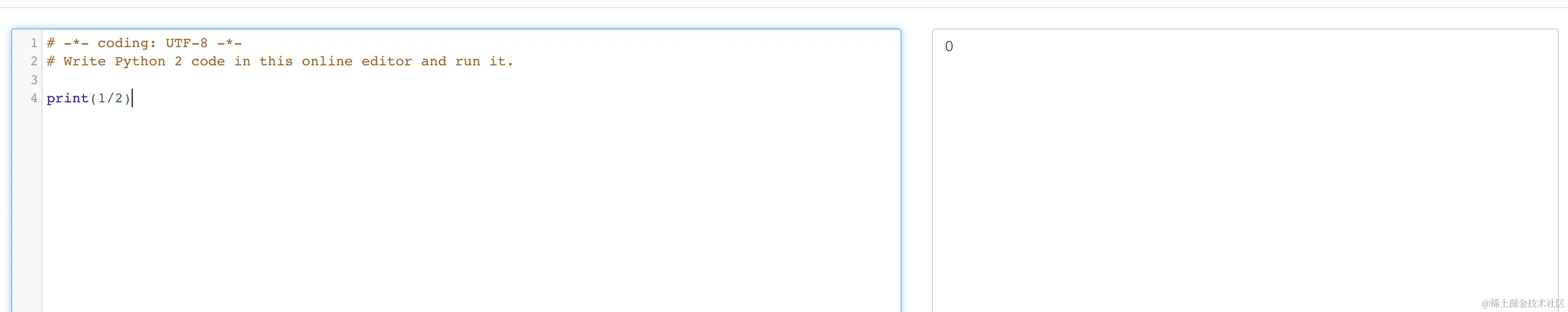 注意⚠️:为了更多的演示信息,我打算找一个Python2的在线工具,在这里演示下面的一些区别信息。在线网址为:c.runoob.com/compile/6/