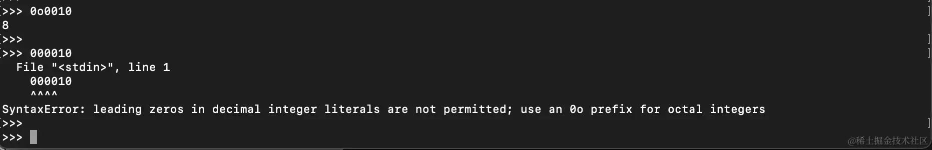 在 Python 3.x 中,表示八进制字面量的方式只有一种,并且必须写成“0o1000”这样的方式,原来“01000”的方式不能使用了。举个例子: