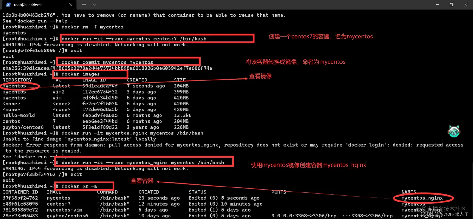 基于mycentos镜像创建容器,容器名为:mycentos_nginx