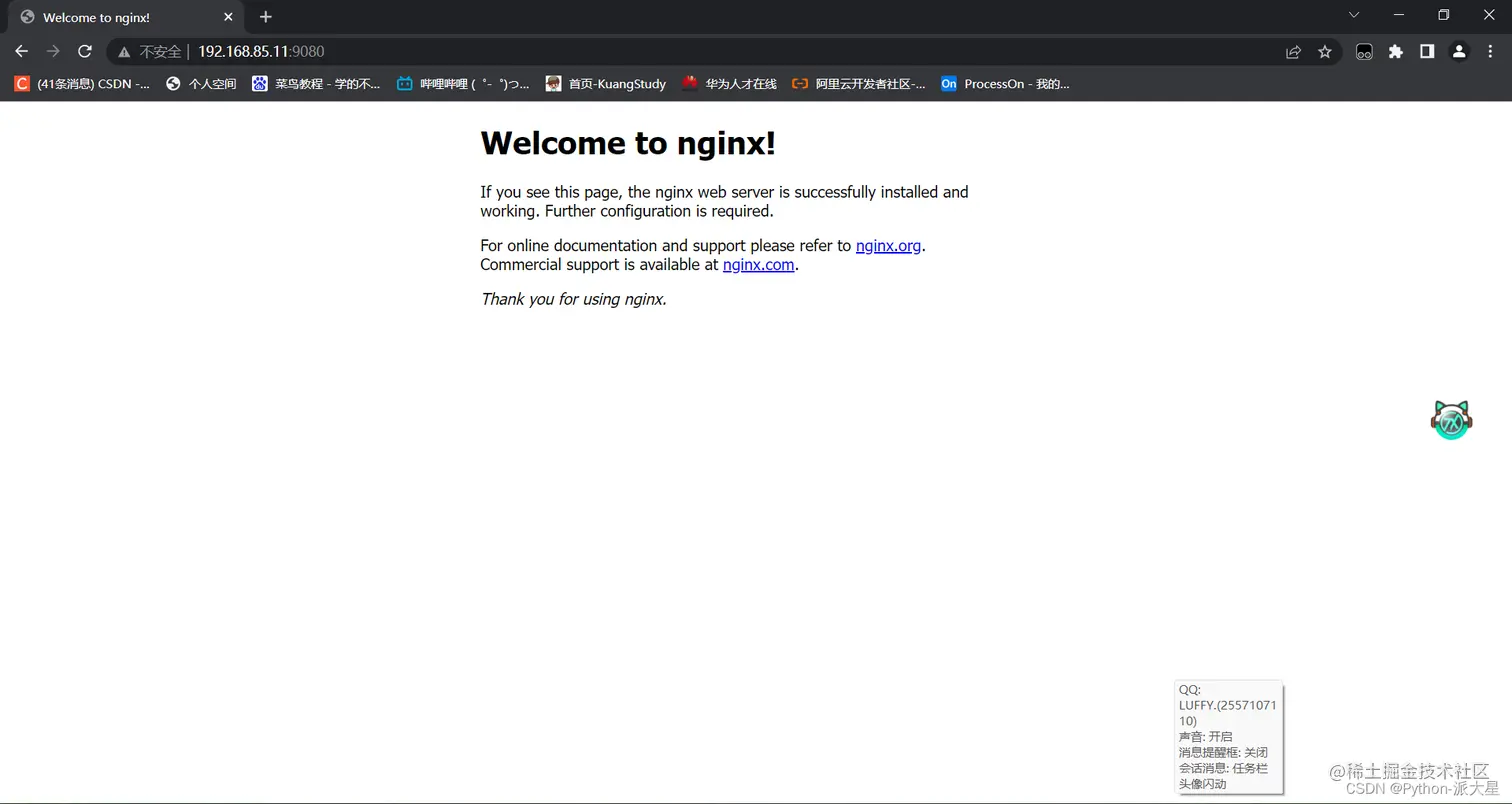 然后就可以打开浏览器,输入虚拟机IP地址,加创建容器时绑定的端口号访问了