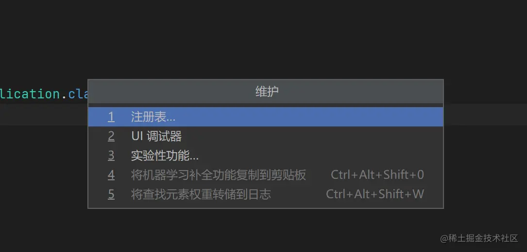 IDEA中,快捷键crtl + shift + alt + /,在出现的弹窗中,点击Registry (注册表)。