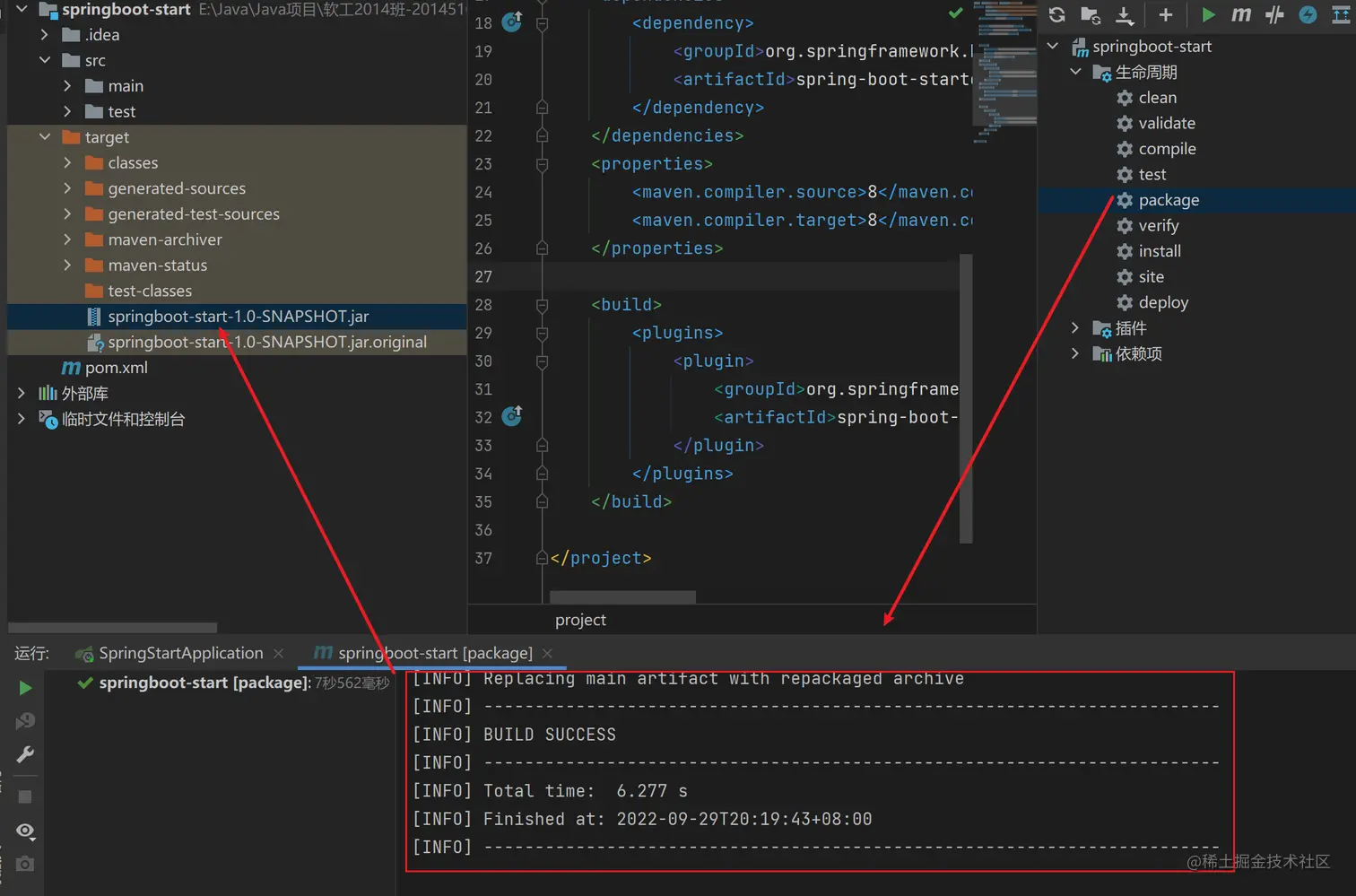 target输出文件中看到打包好的jar包了