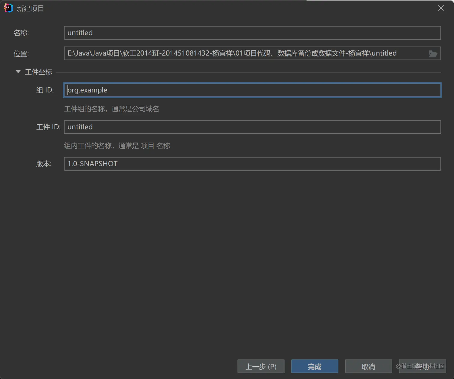 ID即可(工件名称通常是项目名称),点击完成即可