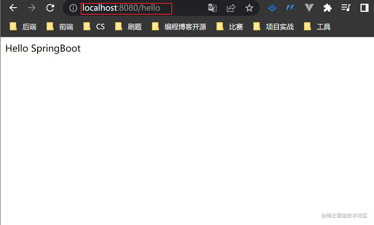 我们打开浏览器访问 localhost:8080/hello 试试看