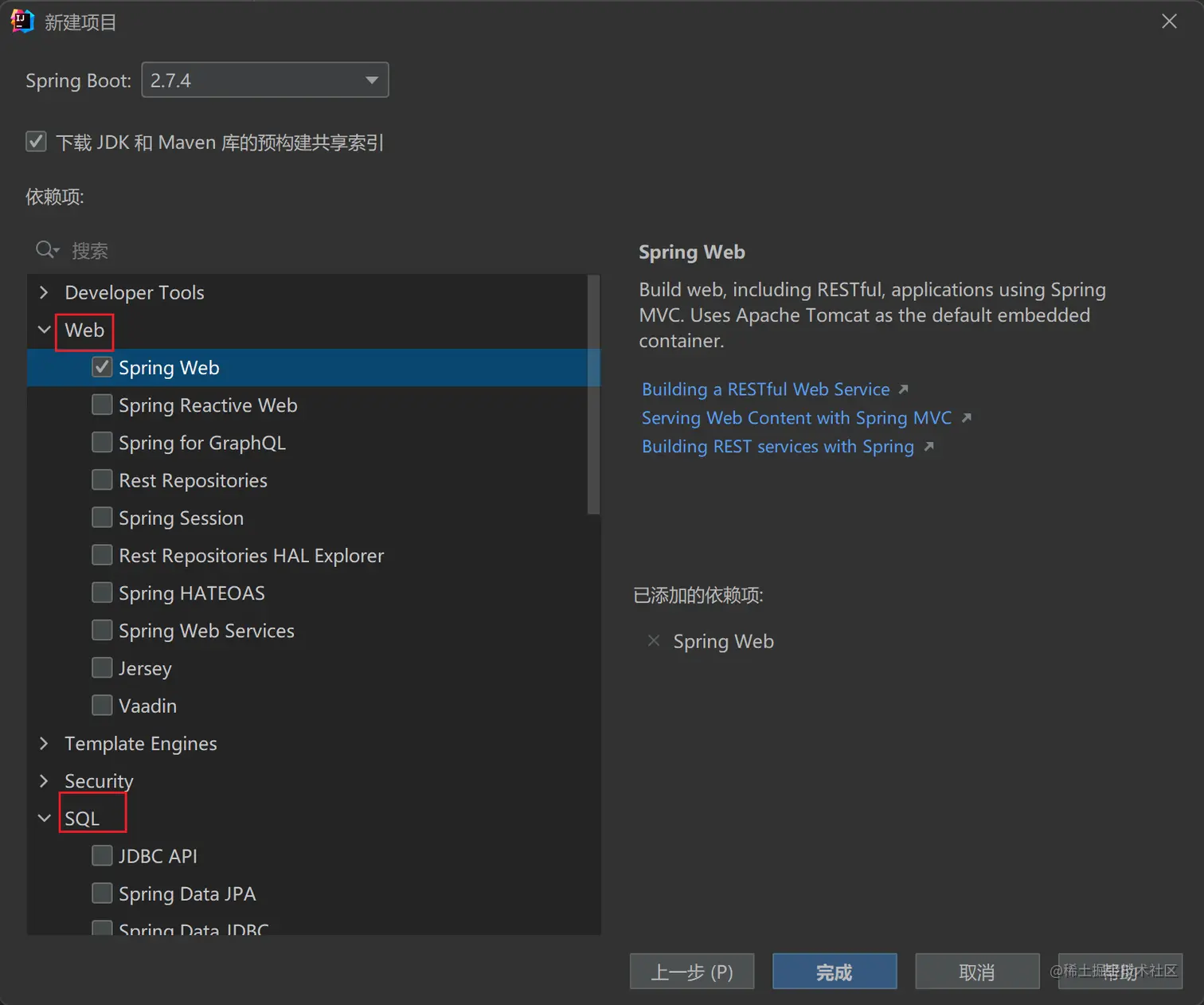 - 点击下一步,指定你需要添加的依赖,如