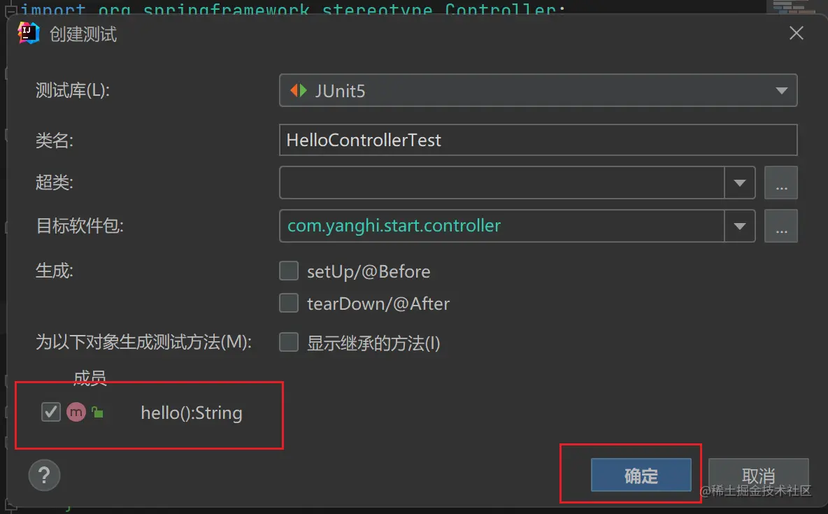 在需要进行测试的类上,按住 Alt + Enter,在弹出的窗口中,点击创建测试,勾选需要测试的成员方法,点击确定。