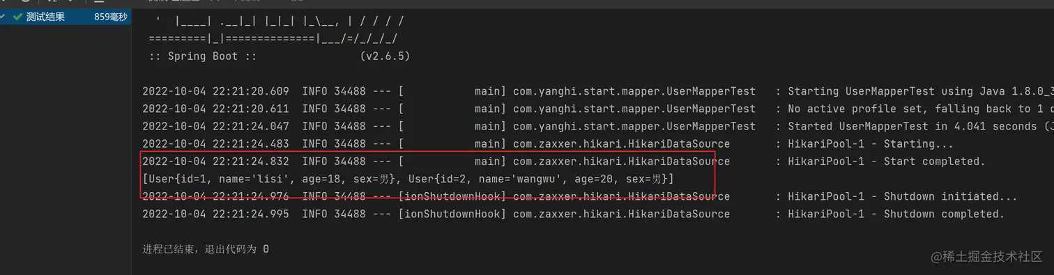 UserMapper接口上按住Alt + Enter生成测试即可