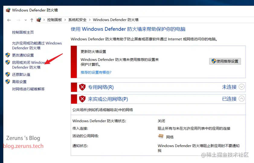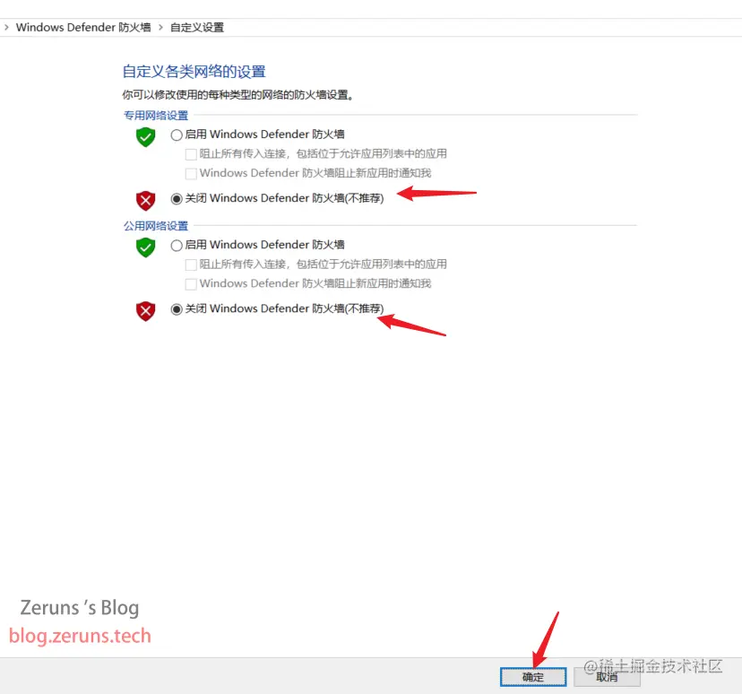 打开 控制面板→系统和安全→Windows Defender 防火墙→启用或关闭Windows Defender防火墙,然后把两个关闭都勾选上,最后点击确定就行。