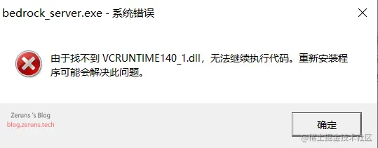 如果出现下图的报错信息由于找不到VCRUNTIME140_1.dll,无法继续执行代码。,那应该是缺少VC++运行库,到这下载一个安装就行:url.zeruns.tech/iq90K