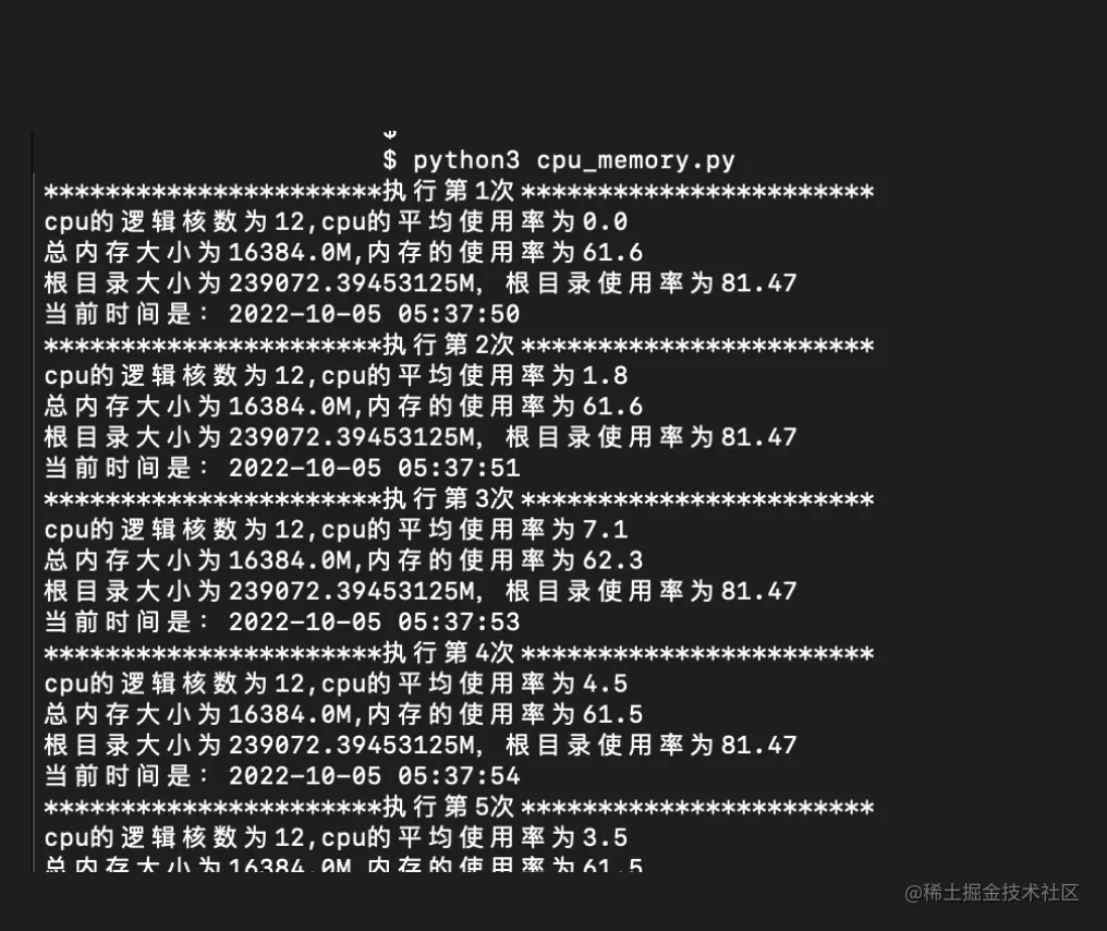 print(f"cpu的逻辑核数为{cpu_count},cpu的平均使用率为{cup_per}")