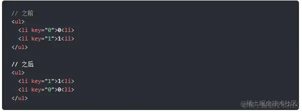 由于有节点改变了位置,所以不能再用位置索引i对比前后的节点,那么如何才能将同一个节点在两次更新中对应上呢?