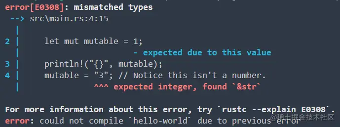 mutable = "3"; // 将字符串赋值给数字是不行的 println!("{}", mutable);