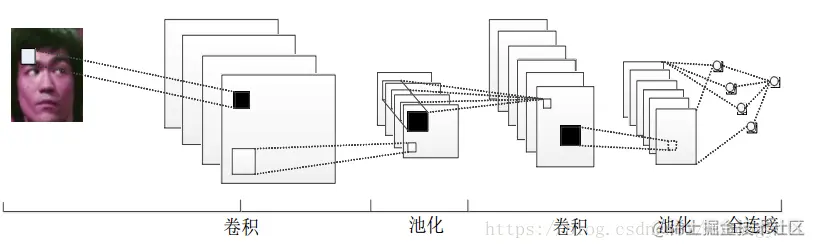 - 池化层:将卷积结果降维,对卷积后的特征图进行降维处理,得到更为显著的特征,池化层会对特征图中的数据作最大值/均值处理,在保留特征图原有的特征的基础上,减少后续运算量。