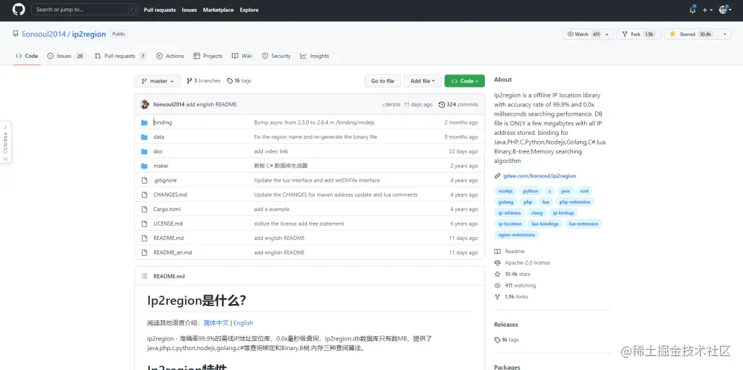 后面,陌溪在 Github 冲浪的时候,发现 了 Ip2region 项目。
