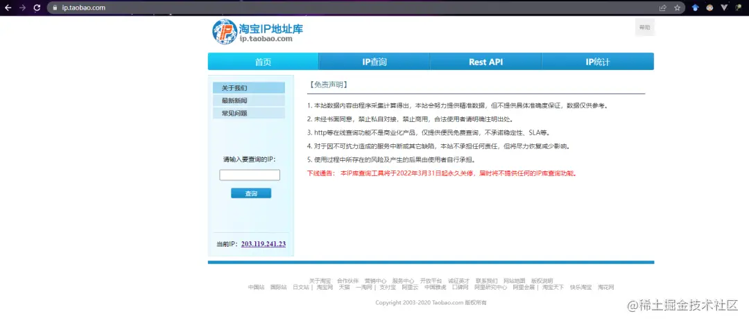 // 淘宝IP宕机,目前使用Ip2region:https://github.com/lionsoul2014/ip2region