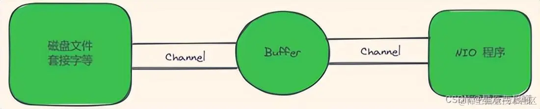 - 通道可以从缓冲区读数据,也可以写数据到缓冲区。