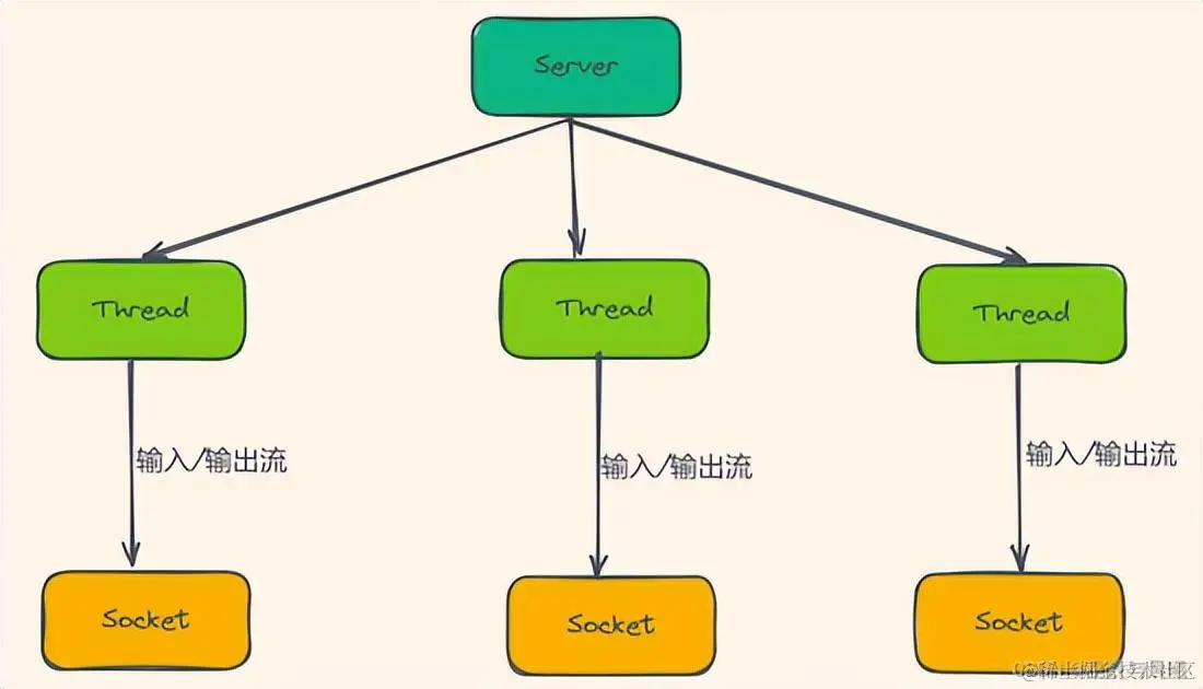 传统的同步阻塞模型还在开发中,服务器端 ServerSocket 负责绑定 IP 地址,启动监听端口;客户端 Socket 负责发起连接操作。连接成功后,双方通过输入和输出流进行同步阻塞式通信。