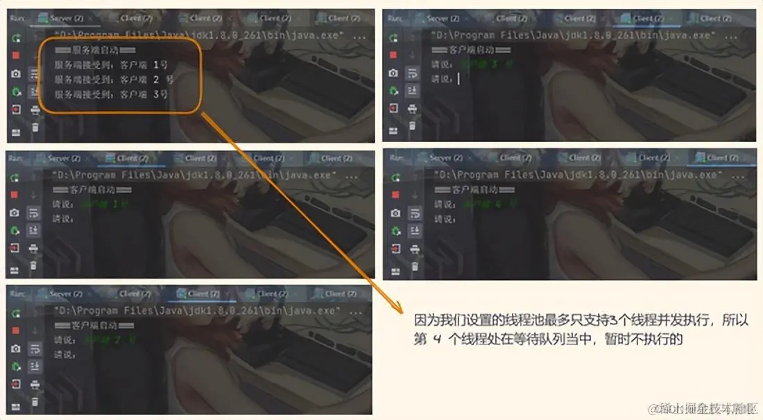 服务端需要接受多个客户端,就要开启多线程。多线程代码: