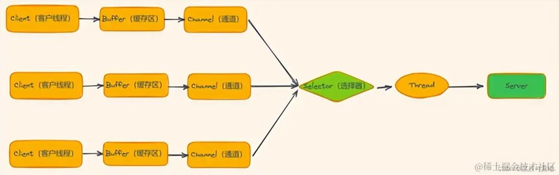 Java 的 NIO ,用非阻塞的 IO 方式,可以用一个线程,处理多个的客户端连接,就会使用到的 Selector (选择器)