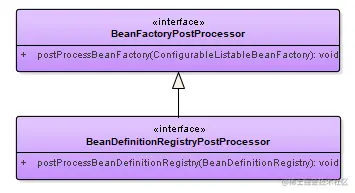 | 出单系统 | BeanDefinitionRegistryPostProcessor | 相当于出单系统,把客户想要的菜给转化到订单上,例如 ConfigurationClassPostProcessor将@Component @Configuration注解类转化为BeanDefinition;基于java config就离不开他也是BeanFactoryPostProcessor的子类 |