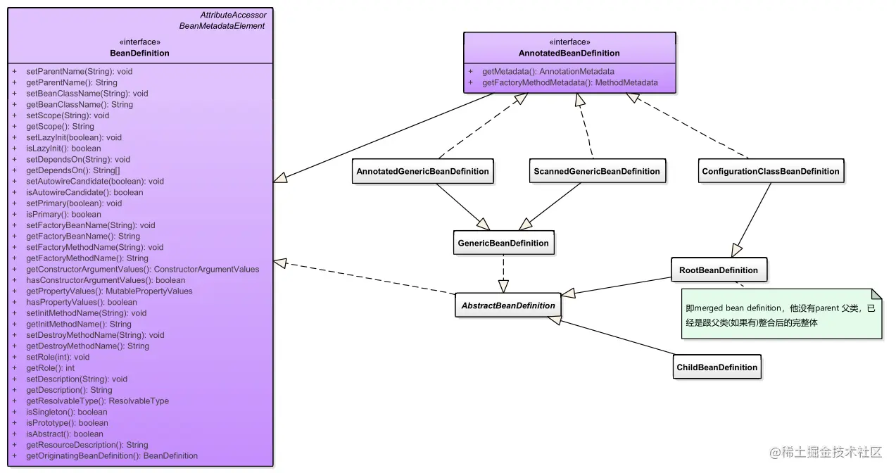 为什么一开始要先讲BeanDefinition呢,不管基于什么配置方式都需要生成BeanDefinition,在Bean的生命周期中,第一步也是getMergedBeanDefinition。