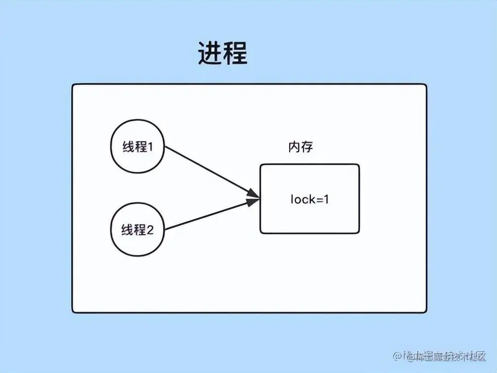 进程中的锁,本质就是内存中一个变量,当一个线程执行某个操作申请加锁时,如果能成功把代表锁的变量值设置为1,则表示获得了锁,其他线程想要获得锁时会阻塞,而拥有锁的线程执行完操作后,再把锁的值设置为0,则表示释放了锁。