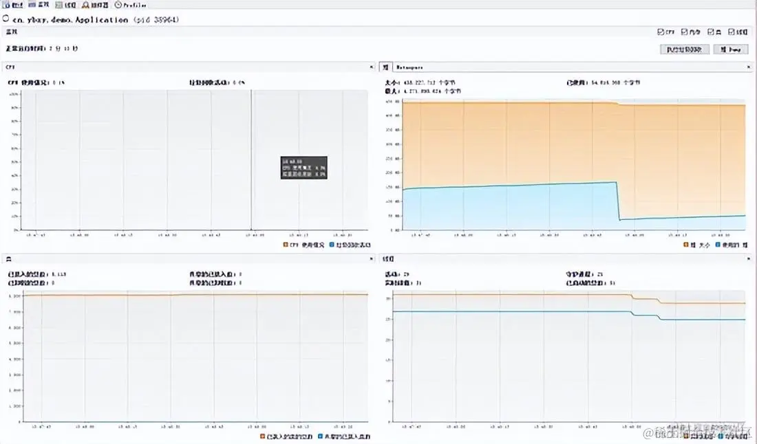 闲置状态下,大概2分钟后堆内存与线程占用有所下降
