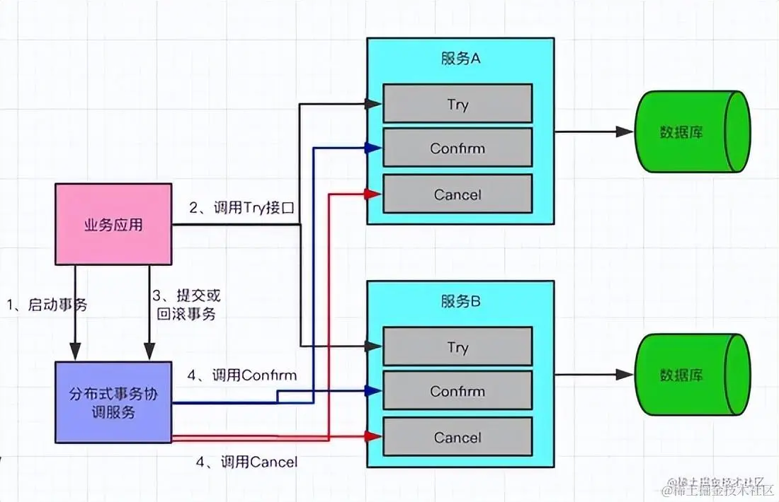 TCC它的核心思想是:"针对每个操作都要注册一个与其对应的确认(Try)和补偿(Cancel)"。