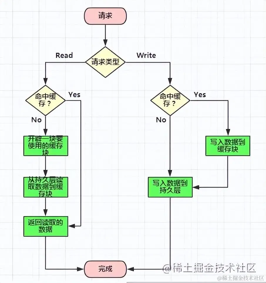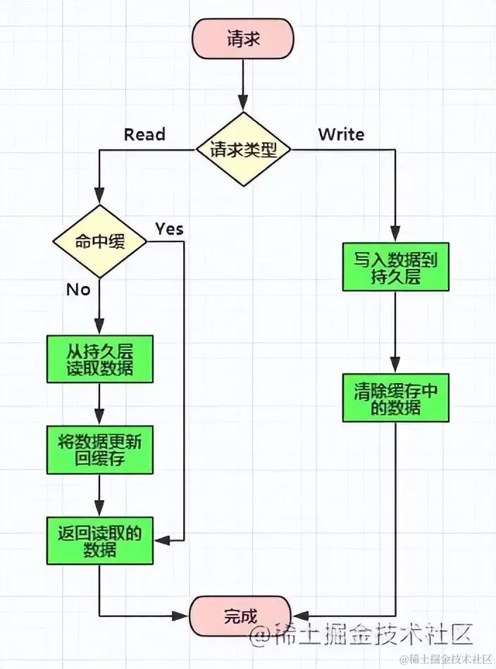 这种模式下所有的操作都走缓存,缓存里的数据再通过 异步的方式同步 到数据库里面。所以系统的写性能能够大大提升了。