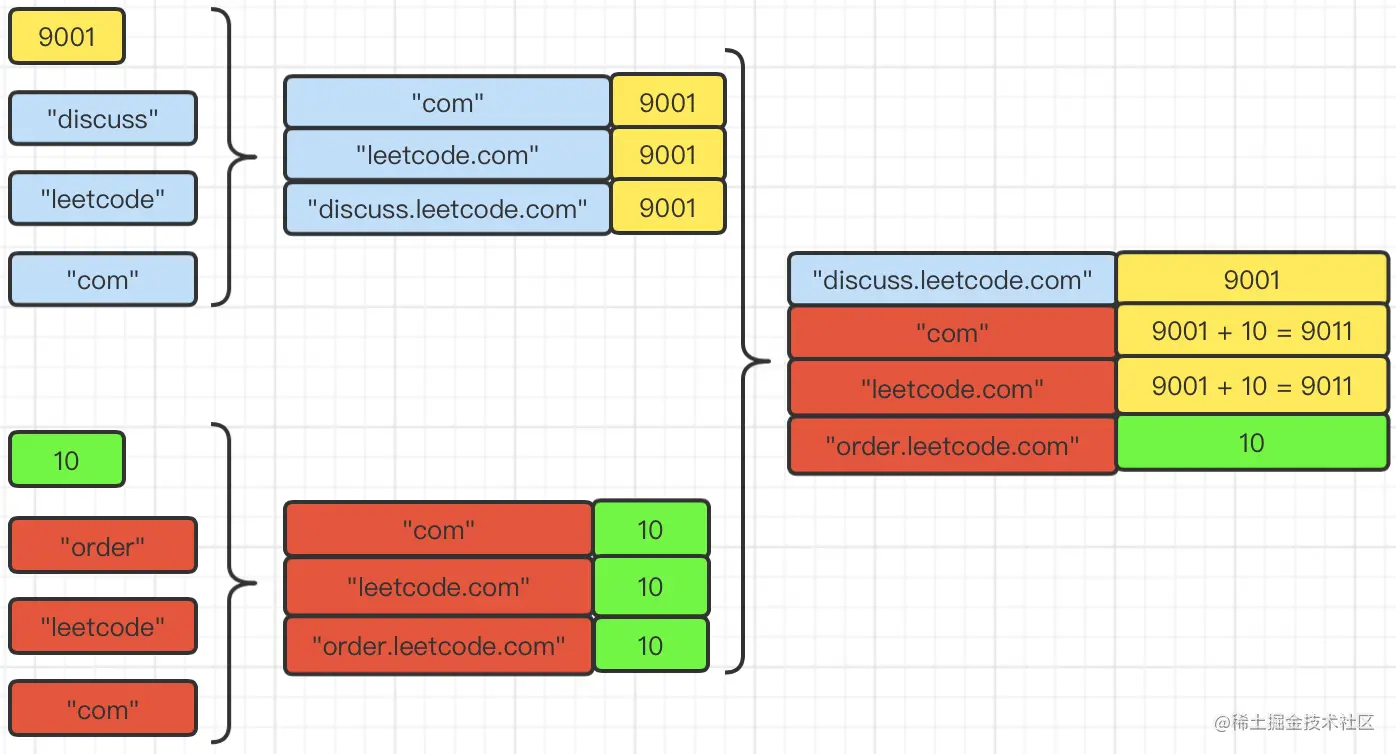 【输出】["9001 leetcode.com","9001 discuss.leetcode.com","9001 com"]