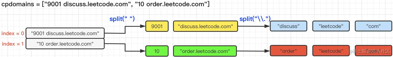 9001 discuss.leetcode.com" 就是一个 计数配对域名 ,表示discuss.leetcode.com被访问了9001次。
