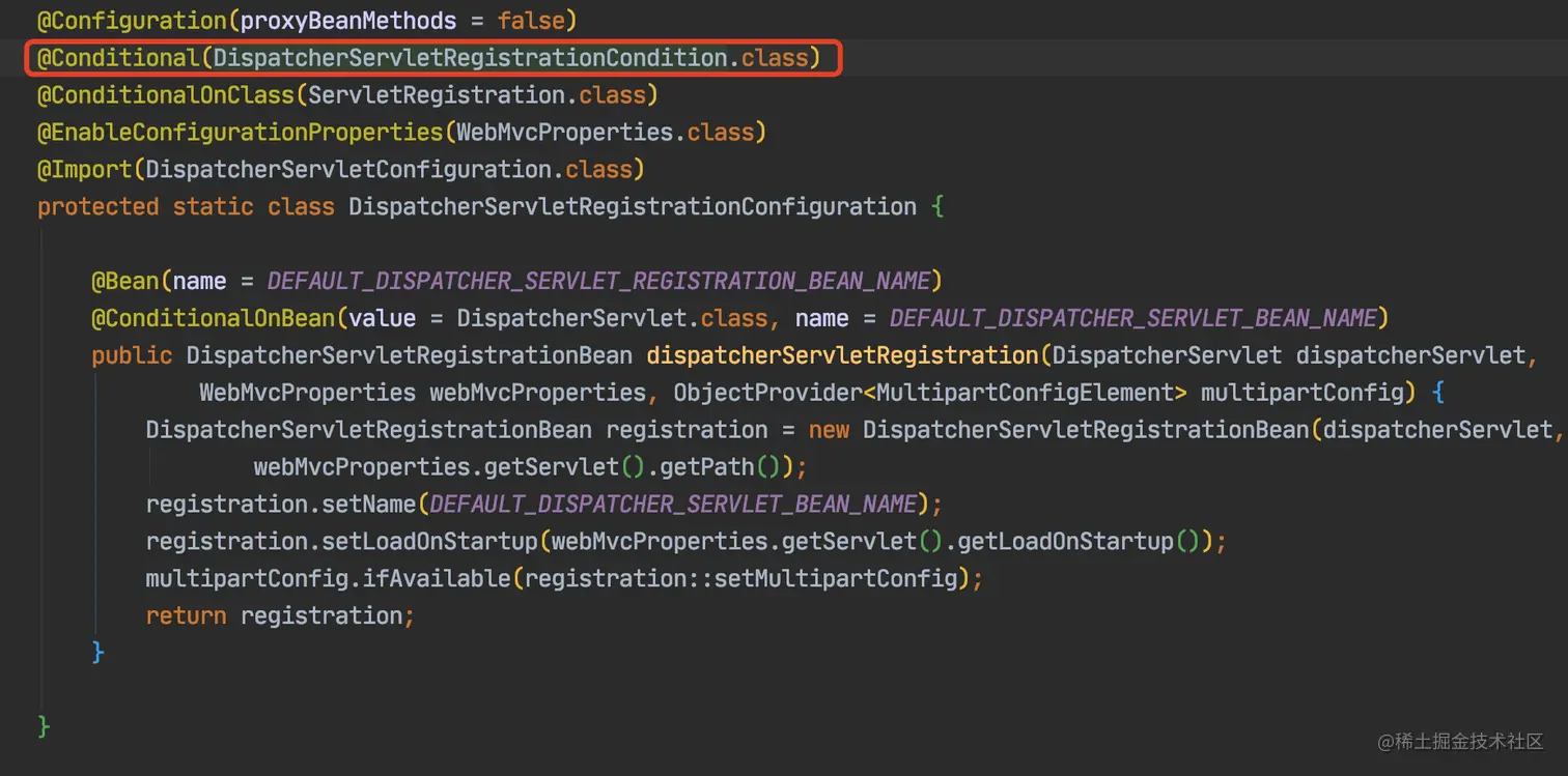 @Conditional接口是说如果DispatcherServletRegistrationCondition满足条件才会去配置