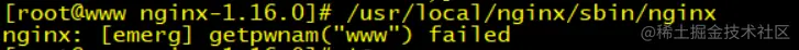 错误的原因是没有创建www这个用户,应该在服务器系统中添加www用户组和用户www,如下命令: