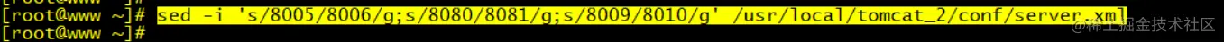 sed -i 's/8005/8006/g;s/8080/8081/g;s/8009/8010/g' /usr/local/tomcat_2/conf/server.xml