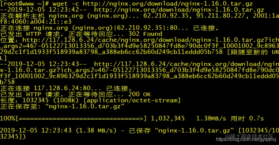 先使用wget下载安装用的压缩包:wget -c nginx.org/download/ng…