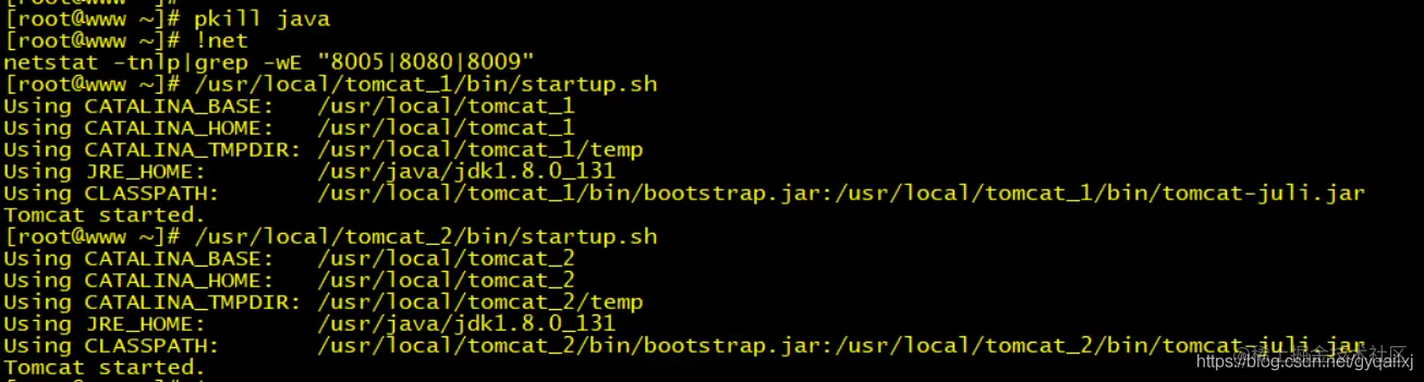 结束java进程,在分别启动tomcat_1和tomcat两个集群。