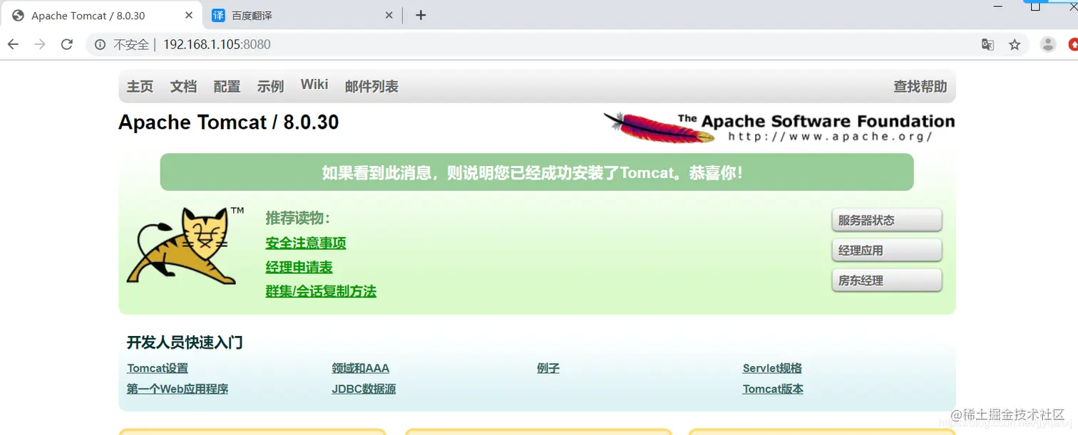查看Tomcat环境是否部署成功;